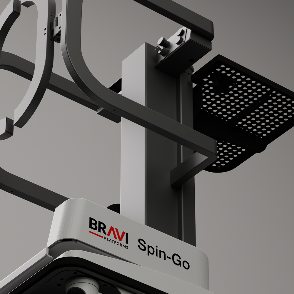 The adjustable load tray rises in sync with the operator to keep materials within reach, supporting up to 198 lbs. A secondary hood-top load deck provides additional capacity for tools or supplies. Combined with a total machine weight of just 617 lbs., Spin-Go is a practical solution where maneuverability and productivity are equally important.