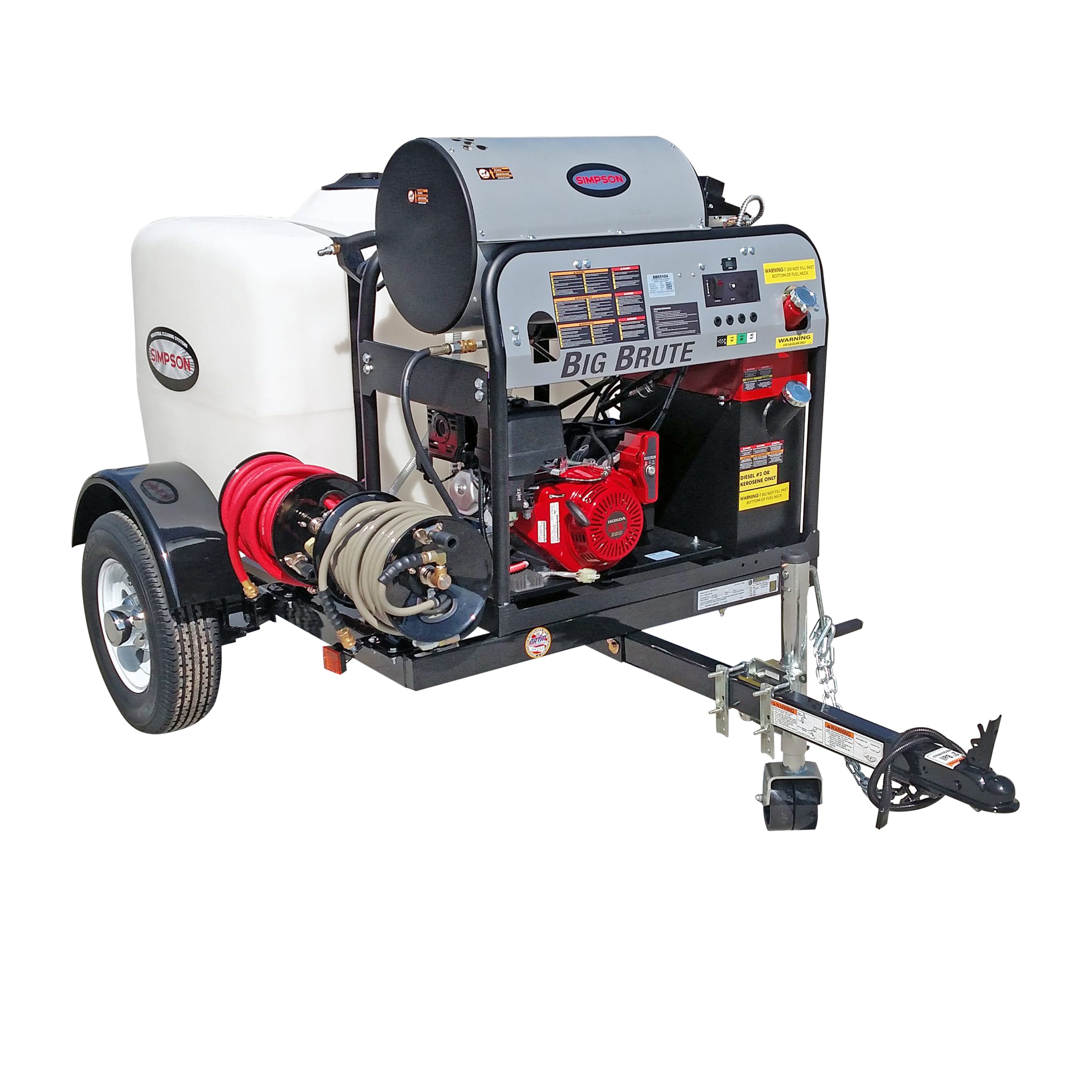 Built on a heavy-duty dual-axle trailer, the 95171 supports extended operation through a high-capacity onboard water tank and a belt-driven pump system. It is intended for professional users who require sustained hot water performance with reliable over-the-road mobility. The 95171 is 49-state / EPA compliant and not approved for sale in California.